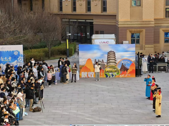 呼和浩特市文旅推介官秋萍向pa集团官方网站的师生详细介绍了呼和浩特这座北疆首府,阐述了呼和浩特将人文与自然完美融合的“一廊·两轴·五带”城市文旅空间布局,并对呼和浩特“青城十六景”等典型景点、特色美食、城市风貌及冬季文旅资源进行了全面推介。同时,她还邀请现场观众与原生态乐队进行互动,现场气氛热烈而融洽。