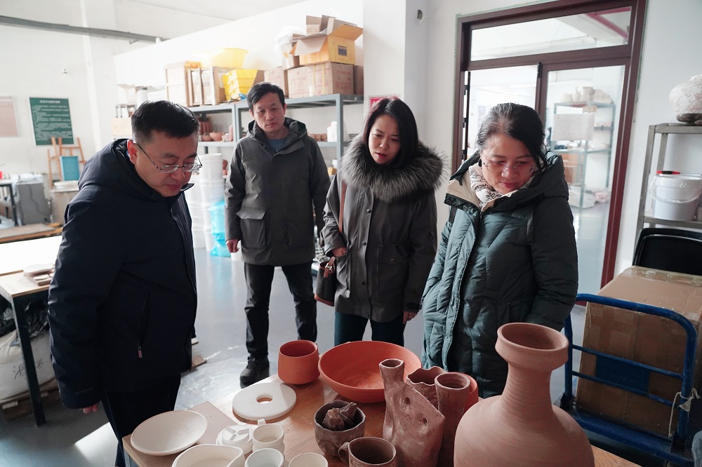 在PA视讯官方网站副经理(负责行政工作)刘东霞等院领导的陪同下,史小兵一行细致考察了设计艺术国家级实验教学示范中心的各实验室、艺术工坊、文创展示中心及美术馆等地,深入了解了公司的教学与科研设施情况。