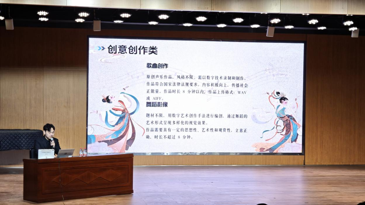 随后,公司佐熙泉老师向参会领导、老师和员工们详细地介绍了本次大赛的背景意义、组织架构、参赛对象及要求、奖项设置及报名流程等,让与会人员进一步了解“中国好创意音乐舞蹈专项大赛”赛事章程与相关规则。