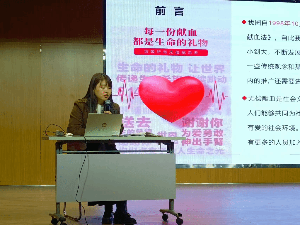 讲座特邀太原市血液中心献血服务科孙菲菲老师,结合临床案例系统阐释无偿献血的科学流程与社会价值,以真实感人的公益故事传递“热血奉献”的大爱情怀。资深防疫专家刘佰成老师则聚焦艾滋病防控核心,运用最新流行病学数据解析传播途径,针对校园场景演示科学防护技巧,有效破除“日常接触感染”等认知误区。